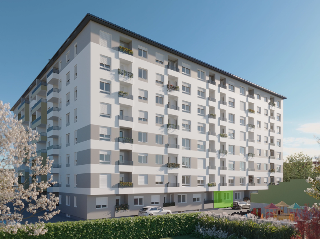 Na lokaciji pored Sokolskog doma u Bijeljini počinjemo sa izgradnjom novog stambeno-poslovnog objekta. Visoko prizemlje plus četiri etaže broje ukupno 41 stambenih jedinica i 1 lokal, sa podzemnom garažom od 24 garažna mjesta i liftom koji kreće iz garaže. Sjeverna strana ima pogled na glavnu ulicu i OŠ Vuk Karadžić, zapadna strana na Sokolski dom i centar grada, a južna strana na Radnikov stadion.