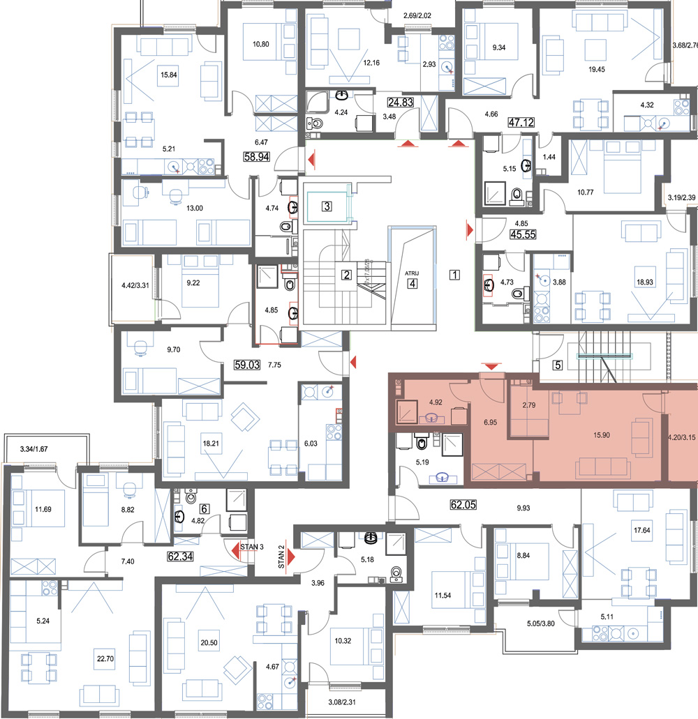 | 5 | lođa (4.20x75%) | 3.15 m2 |