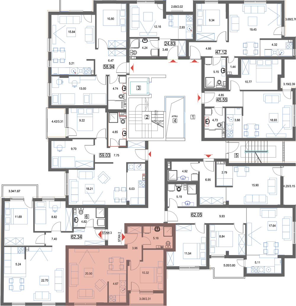 | 4 | kupatilo | 5.18 m2 |