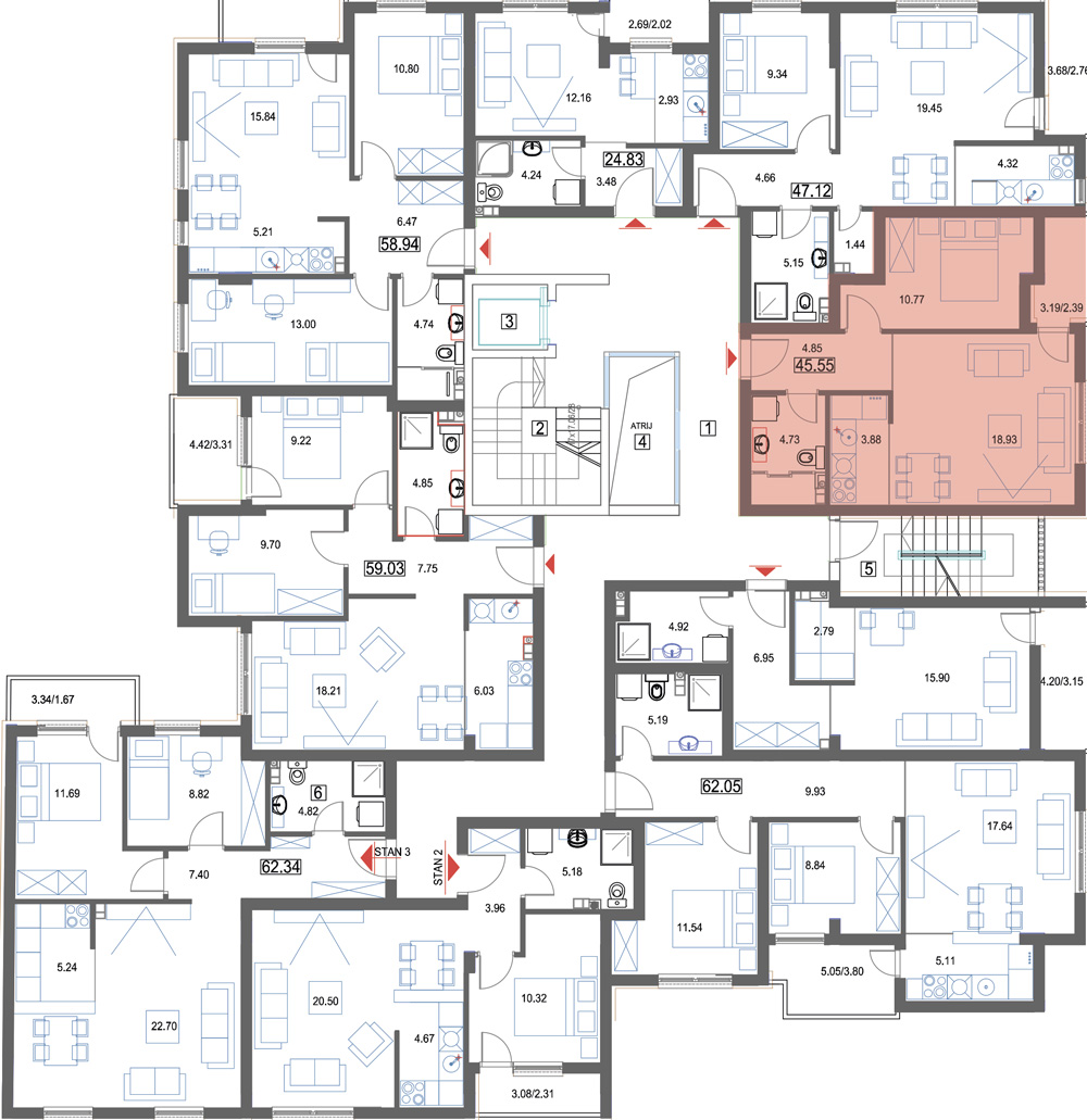 | 6 | lođa (3.19x75%) | 2.39 m2 |