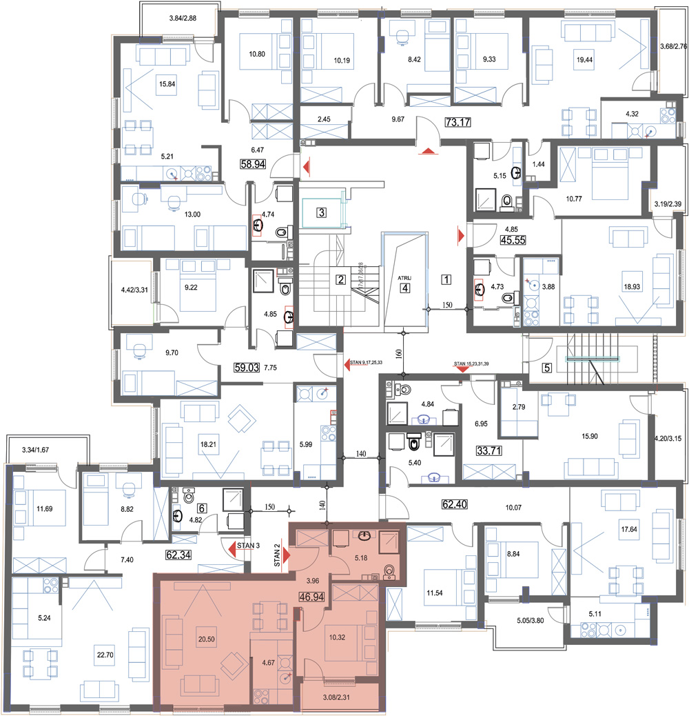 | 6 | lođa (3.08x75%) | 2.31 m2 |