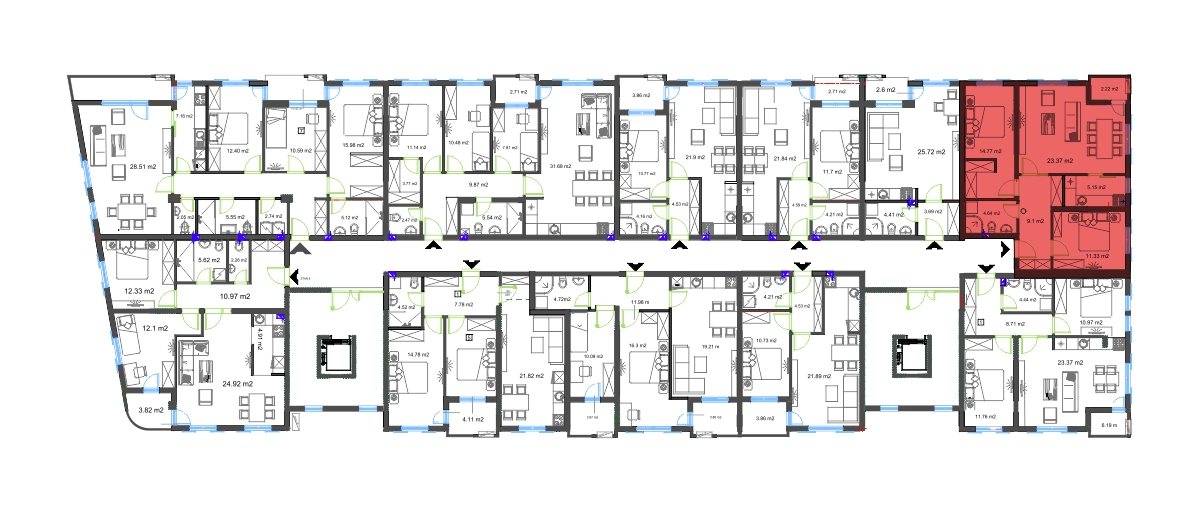 | 3 | Dnevna i trpezarijom | 23.37 m2 |
