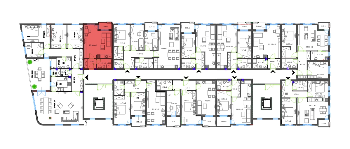 | 3 | Dnevna sa kuhinjom i trpezarijom | 25.99 m2 |
