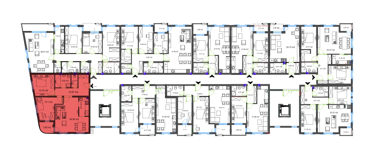 | 3 | Dnevna i trpezarijom | 24.92 m2 |