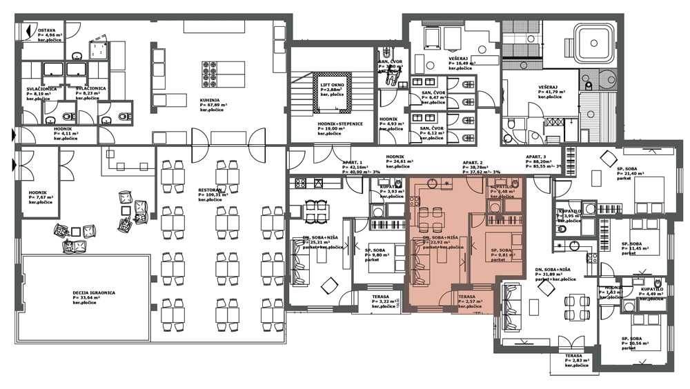 | 1 | Dnevna soba sa nišom | 22.92 m2 |