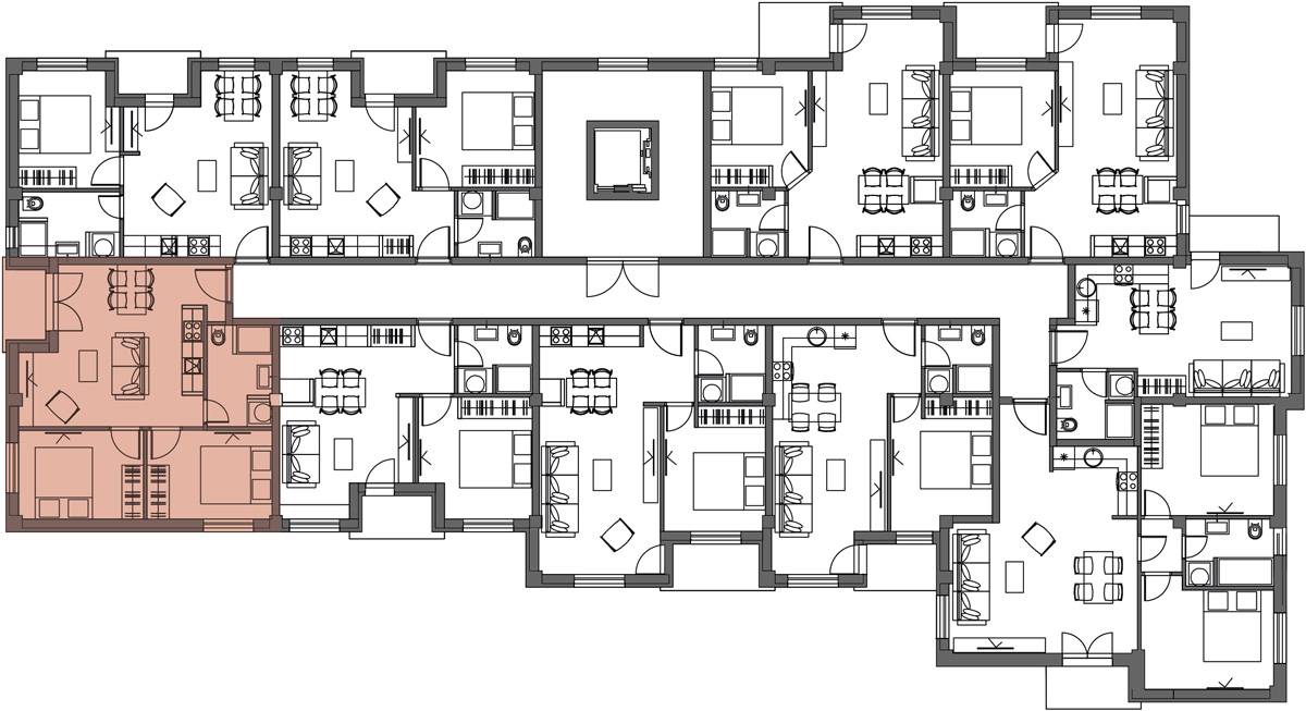 | 1 | Dnevna soba sa nišom | 21.42 m2 |